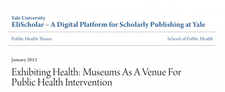 “Public health interventions are as broad as the field itself. Through this paper, I will highlight the missed opportunity that museums present as an intervention site for public health. I will then discuss the design, content, challenges, successes, and directions for growth of a specific exhibition (Big Food: Health, Culture, and the Evolution of Eating), as an example of successfully translating public health into the museum context, which could be used as a starting point for further interventions in this underutilized venue.” (p.3)